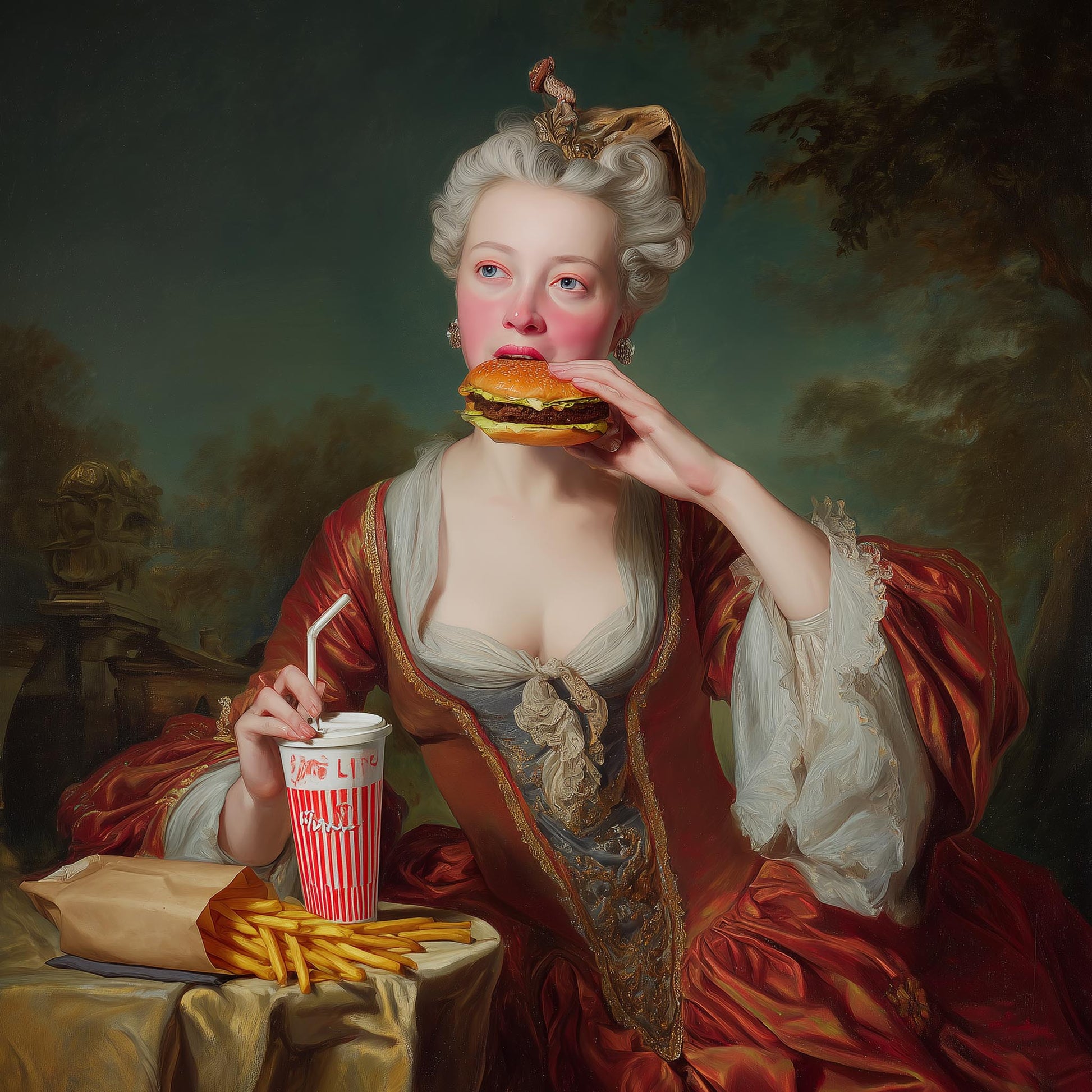 ●"Fastfood Queen" - 3/5 Limited Edition - giclée on 350 g/m² unframed cotton canvas with a certificate of authenticity and signed by the artist on the back.