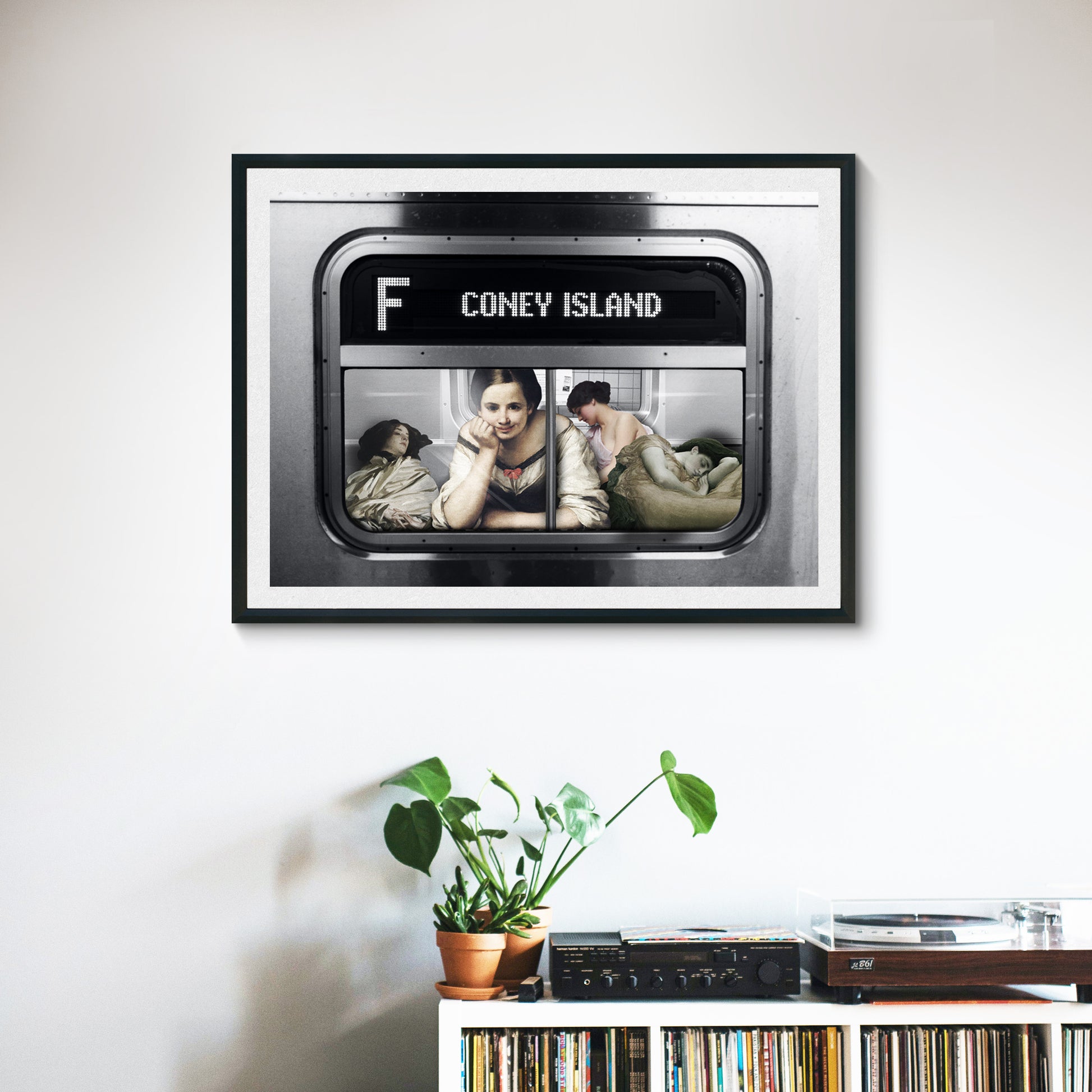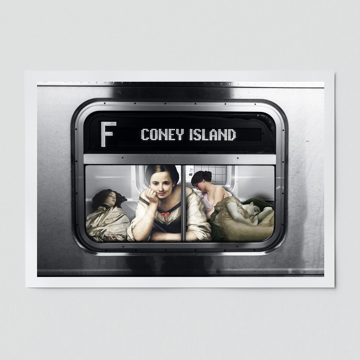 - This melancholic collage is a fascinating blend of figures taken from neoclassical paintings with contemporary photography, creating a radical shift in the final work's context. Picture the iconic New York subway line, a symbol of modernity and constant movement, transporting the most emblematic female figures in the history of painting.